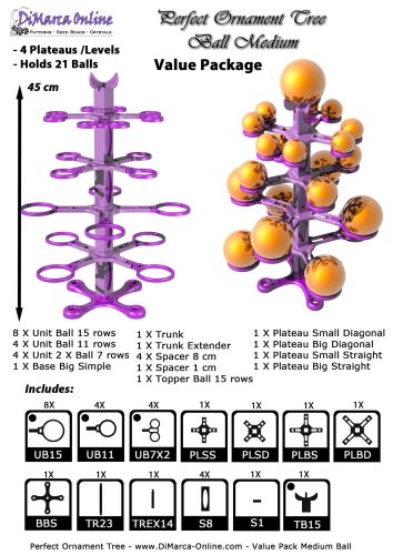 Please view the Product Sheet PDF for extra information: Product Sheet Perfect Ornament Tree Value Package Medium Ball