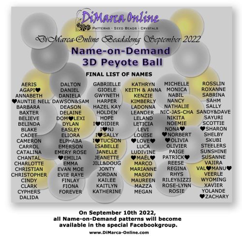 * Peyote Ball Beadalong ALL-ACCESS-PASS * September 2022 - 124 Name Peyote Ball Patterns