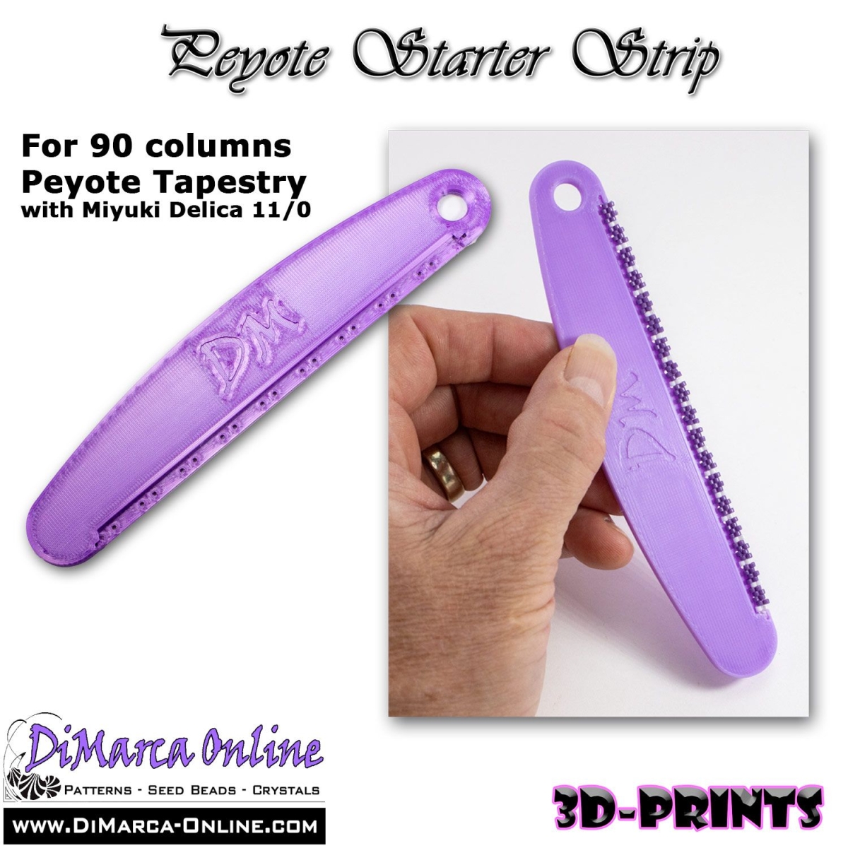 The Peyote Starter Strip is a handy tool to start a Peyote Tapestry project with Miyuki Delicas. There are 3 different sizes available: it can start a Peyote Tapestry up to 90, 120 or 200 columns.