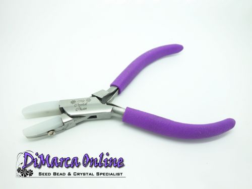 Perfect jewelry tool for safely pushing prongs and do wirework. You can use it to embed crystals in metal settings and you can use it as a flat nose plier, shaping and sculpting craft wire and for wire wrapping. The nylon jaws protect the surface finish of metal or other materials handled with this plier and don't scratch.