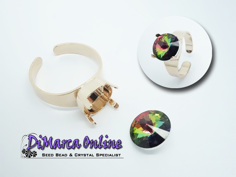 Ring Setting for 10 mm Crystal Rivoli's. The rivoli's can be set by bending the 4 prongs gently inwards with pliers.