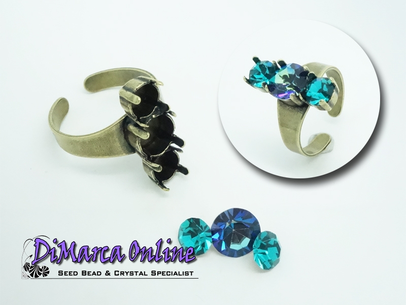 Ring Setting for 2 x 6 mm (SS29) and 1 x 8 mm (SS39) Crystal Chatons. The chatons can be set by bending the 4 prongs gently inwards with pliers.