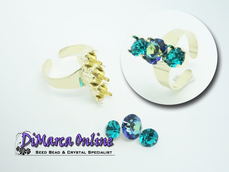 Ring Setting for 2 x 6 mm (SS29) and 1 x 8 mm (SS39) Crystal Chatons. The chatons can be set by bending the 4 prongs gently inwards with pliers.