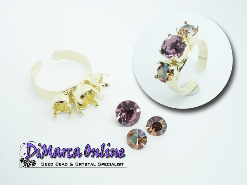 Ring Setting for 2 x 6 mm (SS29) and 1 x 8 mm (SS39) Crystal Chatons. The chatons can be set by bending the 4 prongs gently inwards with pliers.