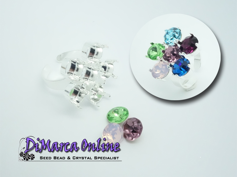 Ring Setting for 6 x 8 mm (SS39) Crystal Chatons. The chatons can be set by bending the 4 prongs gently inwards with pliers.