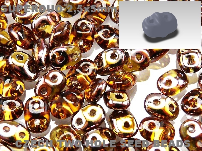 SUPERDUO BEADS. Oval shaped seed bead with 2 holes. Very regular, each bead has the same size and shape.