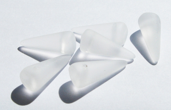 Pointy hand-pressed glass Spike beads with a hole from side to side near the wide end.