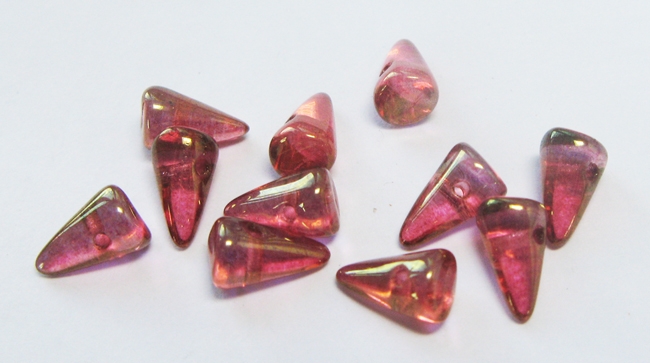 Pointy hand-pressed glass Spike beads with a hole from side to side near the wide end.