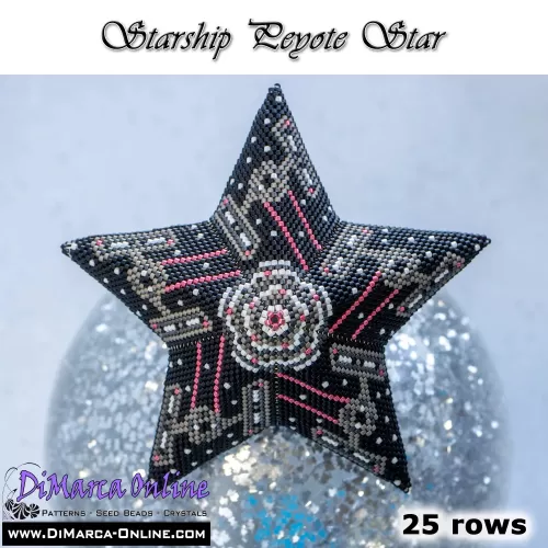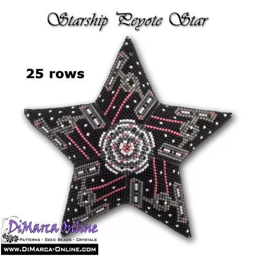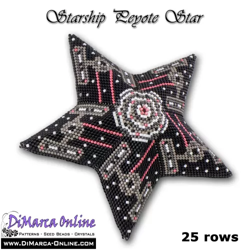 This beading pattern provides a colour diagram and word chart to create the STARSHIP 3D Peyote Star.
