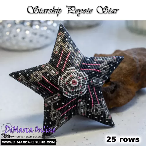 Included are also the step by step instructions with clear 3D images of how to create a 3D Star in peyote with warped squares: "Little 3D Peyote Star"