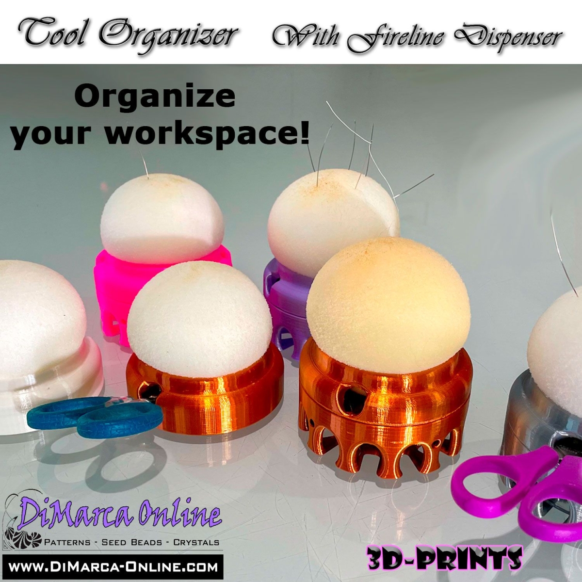 You can choose to have the basic Tool Organizer with Needle Cushion and Safe Scissor Spot or add the Fireline Dispenser.