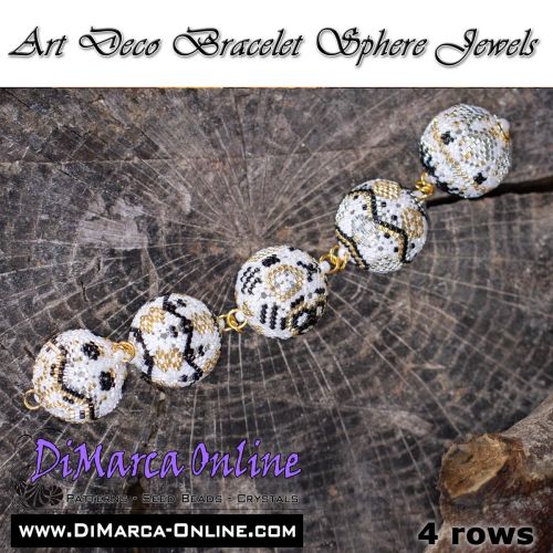 This beading pattern provides colour diagrams and word charts to create 5 ART DECO BRACELET SPHERE JEWELS (5 different designs) - 3D Peyote Balls.