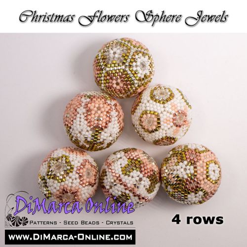 This beading pattern provides colour diagrams and word charts to create 6 CHRISTMAS FLOWERS SPHERE JEWELS (6 different designs) - 3D Peyote Balls.