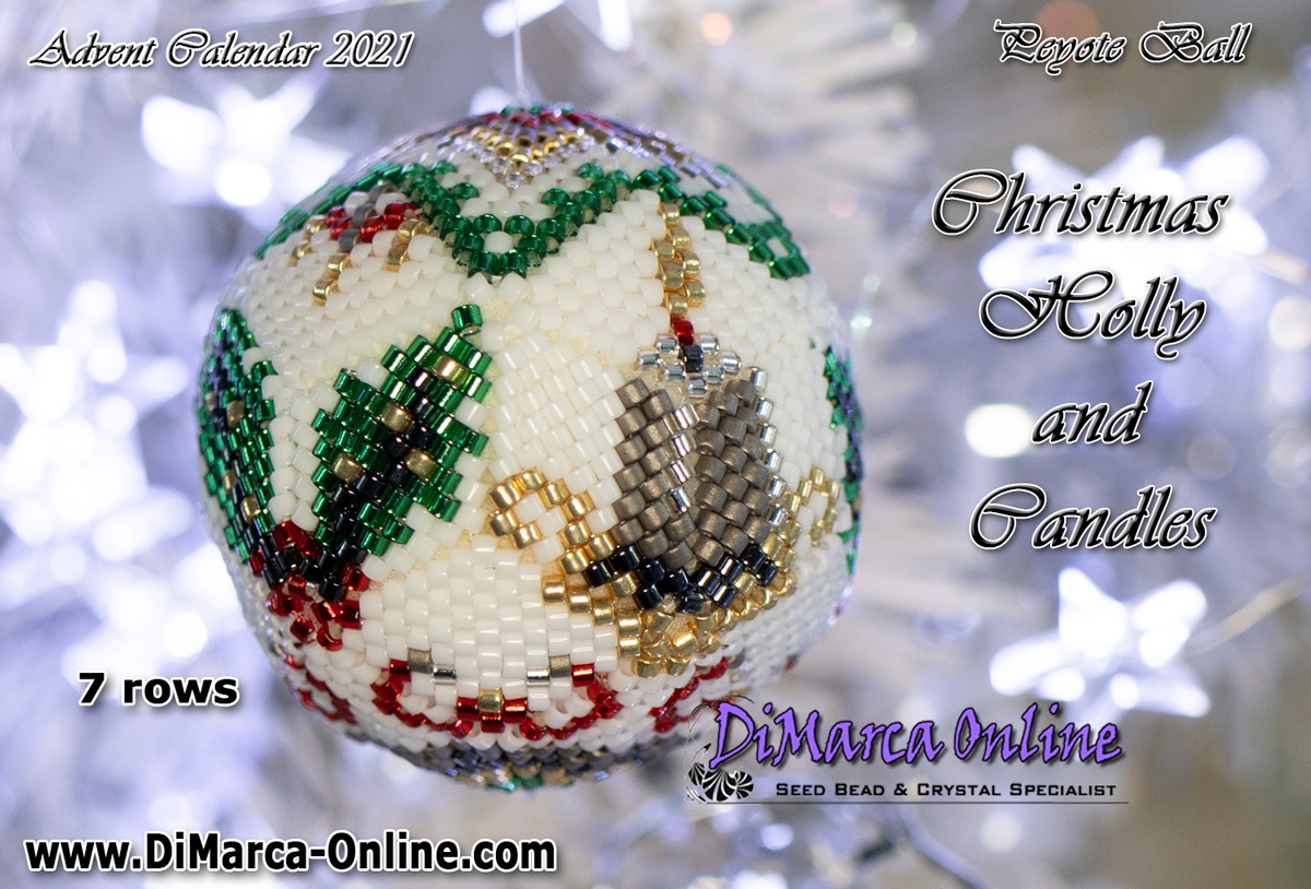 TUTORIAL CHRISTMAS HOLLY AND CANDLES 3D PEYOTE BALL