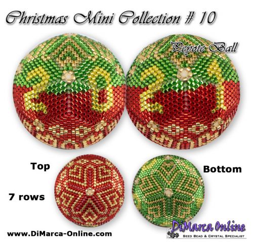 This beading pattern provides colour diagrams and word charts to create the CHRISTMAS MINI 10 - 3D Peyote Ball.