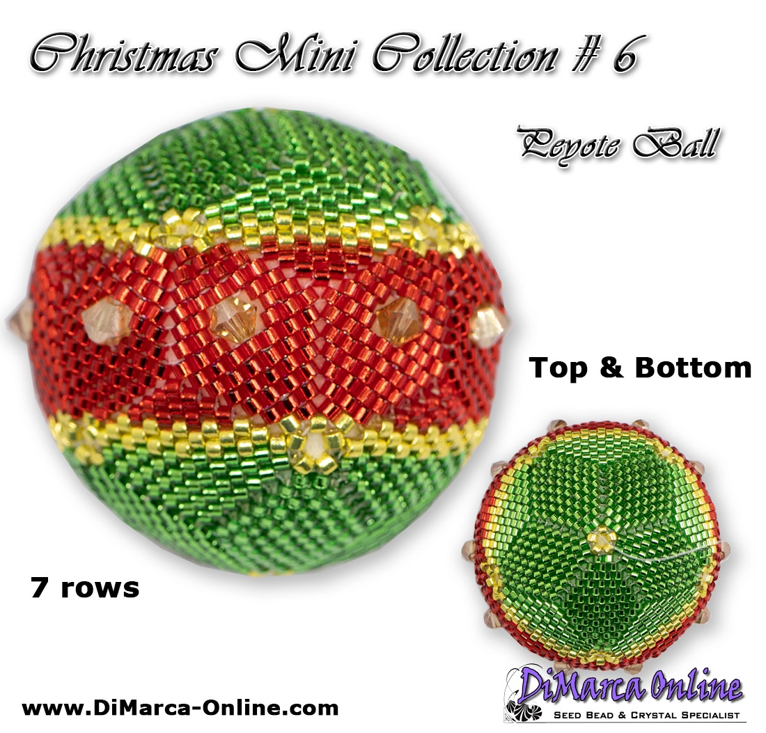 This beading pattern provides colour diagrams and word charts to create the CHRISTMAS MINI 6 - 3D Peyote Ball.