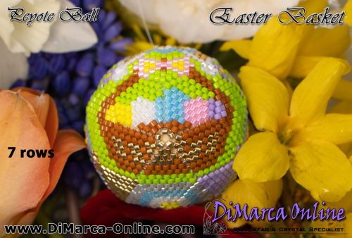 This beading pattern provides colour diagrams and word charts to create the EASTER BASKET 3D Peyote Ball.