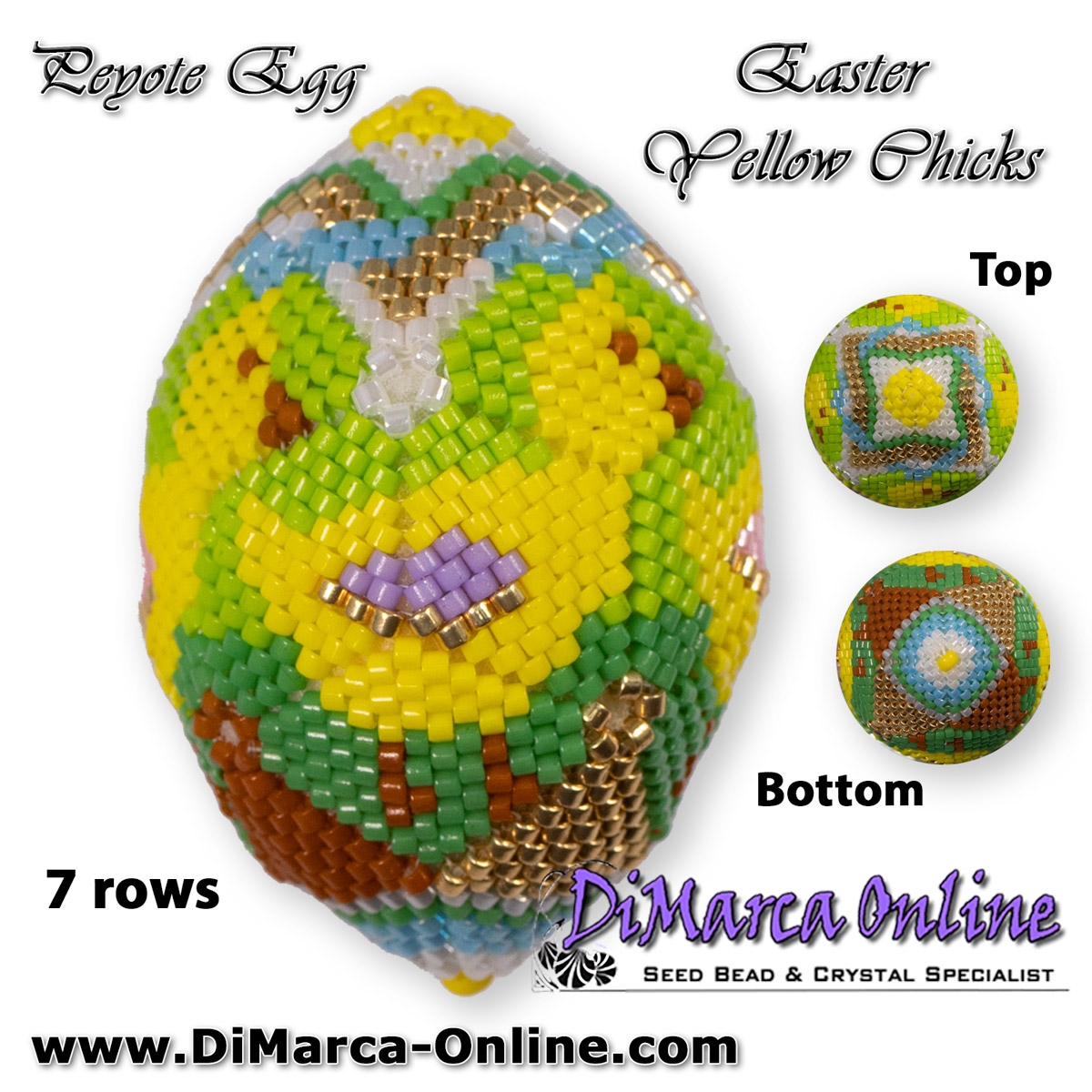 This beading pattern provides colour diagrams and word charts to create the EASTER YELLOW CHICKS - 3D Peyote Egg.