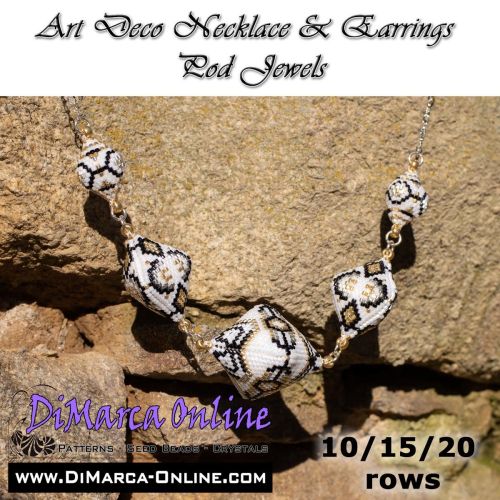 This beading pattern provides colour diagrams and word charts to create the 4 ART DECO NECKLACE AND EARRINGS POD JEWELS (4 different designs) - 3D Peyote Pods.