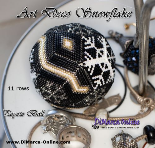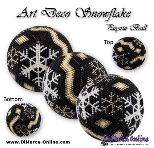 This beading pattern provides colour diagrams and word charts to create the ART DECO SNOWFLAKES 3D Peyote Ball.