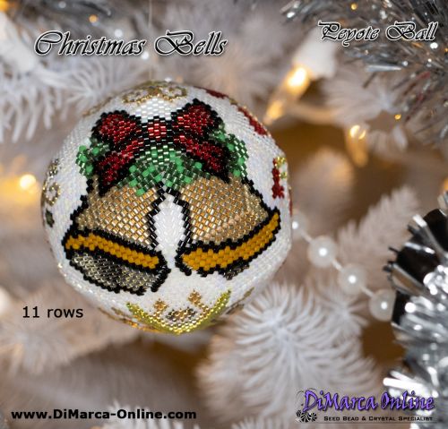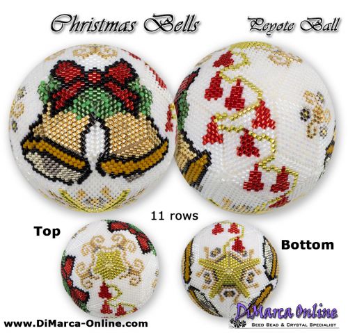 This beading pattern provides colour diagrams and word charts to create the CHRISTMAS BELLS 3D Peyote Ball.