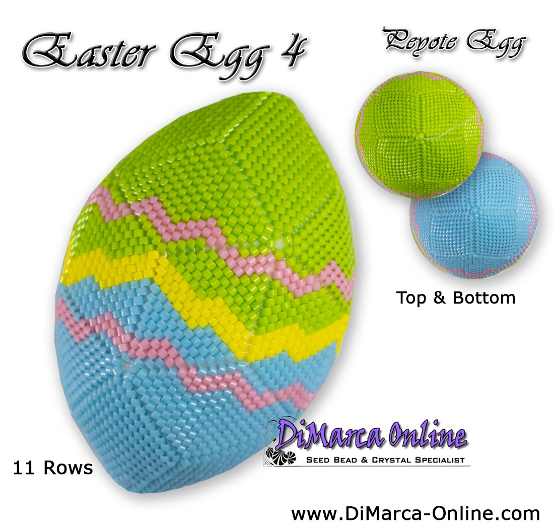 It includes a list of needed materials and colour codes. The Peyote Egg is beaded with Miyuki Delica's. You can also use Toho Treasures (but don't mix them, as there is a slight difference in size).