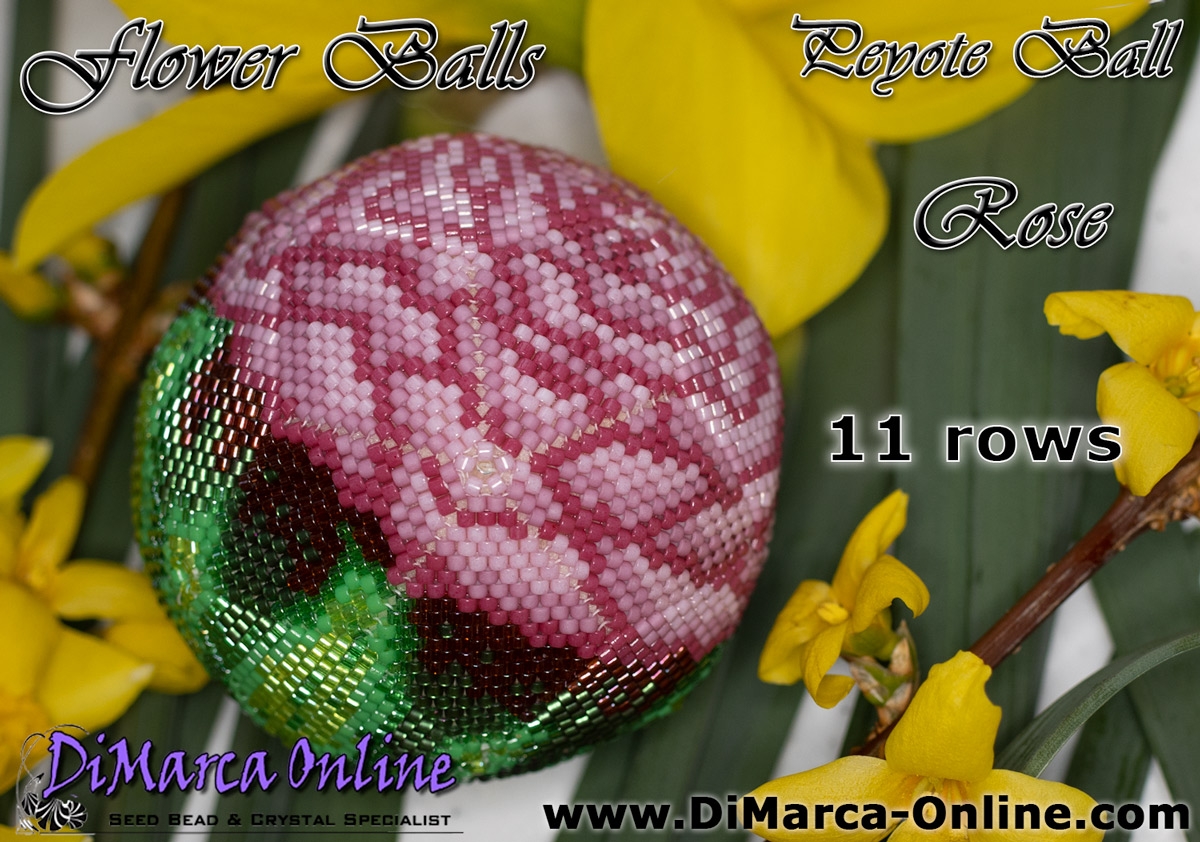 It includes a list of needed materials and colour codes. The Peyote Ball is beaded with Miyuki Delica's. You can also use Toho Treasures (but don't mix them, as there is a slight difference in size).