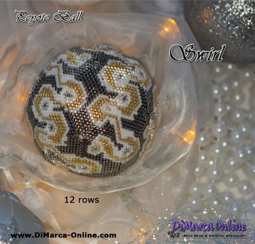 It includes a list of needed materials and colour codes. The Peyote Ball is beaded with Miyuki Delica's. You can also use Toho Treasures (but don't mix them, as there is a slight difference in size).