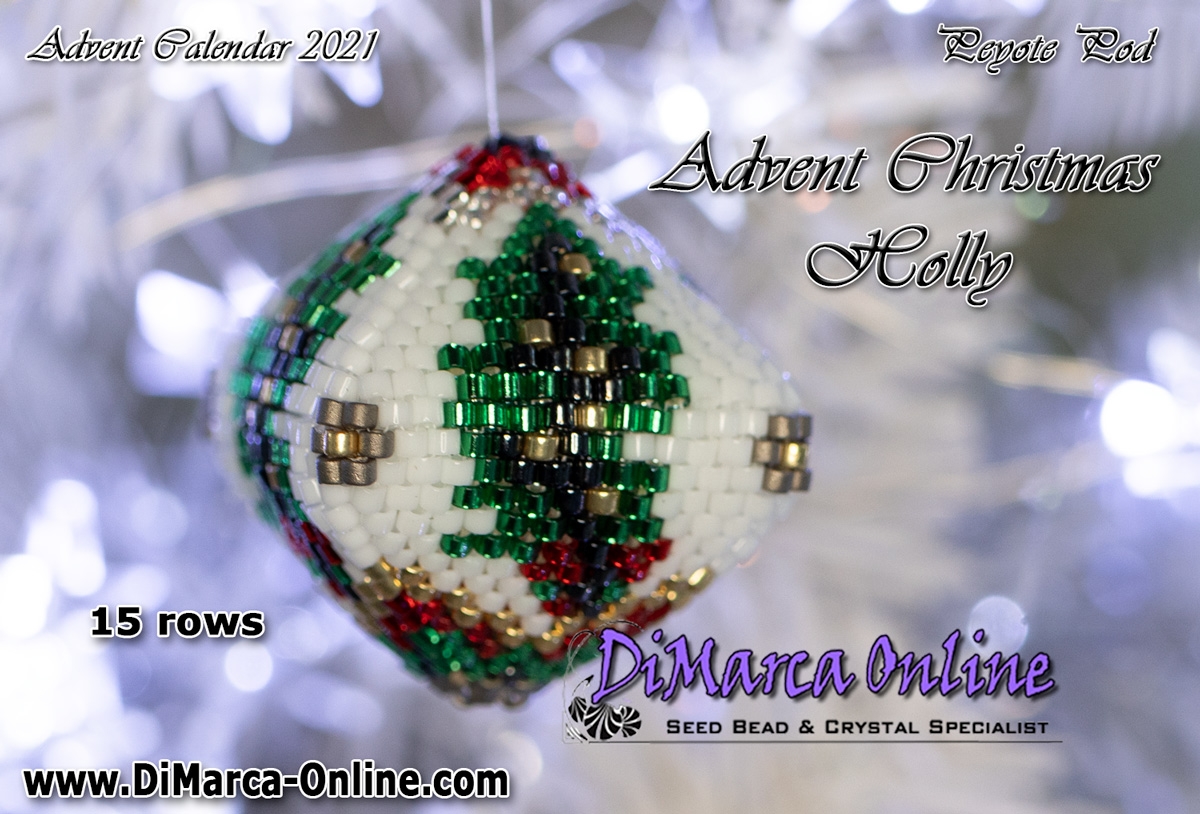 Tutorial 15 rows - Advent Christmas Holly 3D Peyote Pod + Basic Tutorial (download link per e-mail)