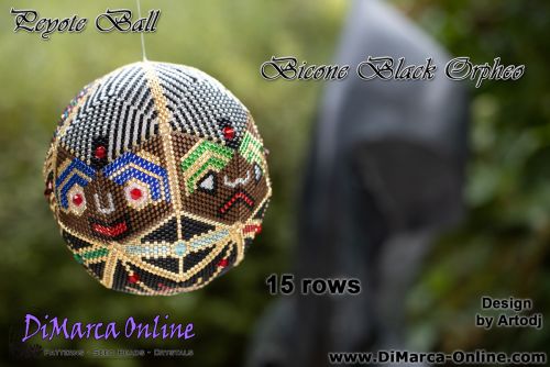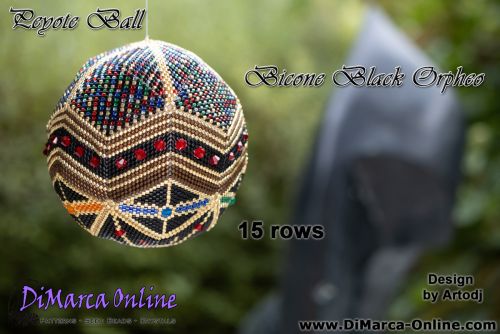This beading pattern provides colour diagrams and word charts to create the BICONE BLACK ORPHEO 3D Peyote Ball.