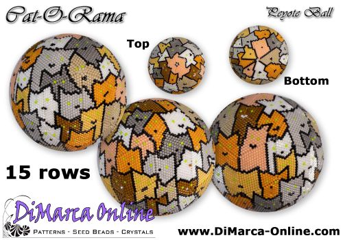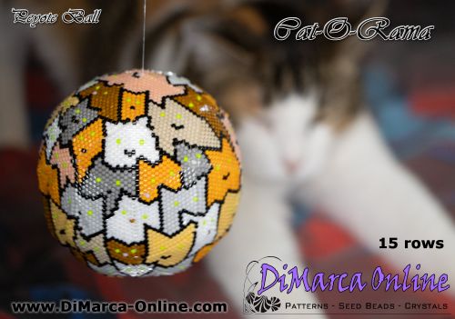 This beading pattern provides colour diagrams and word charts to create the CAT-O-RAMA 3D Peyote Ball.