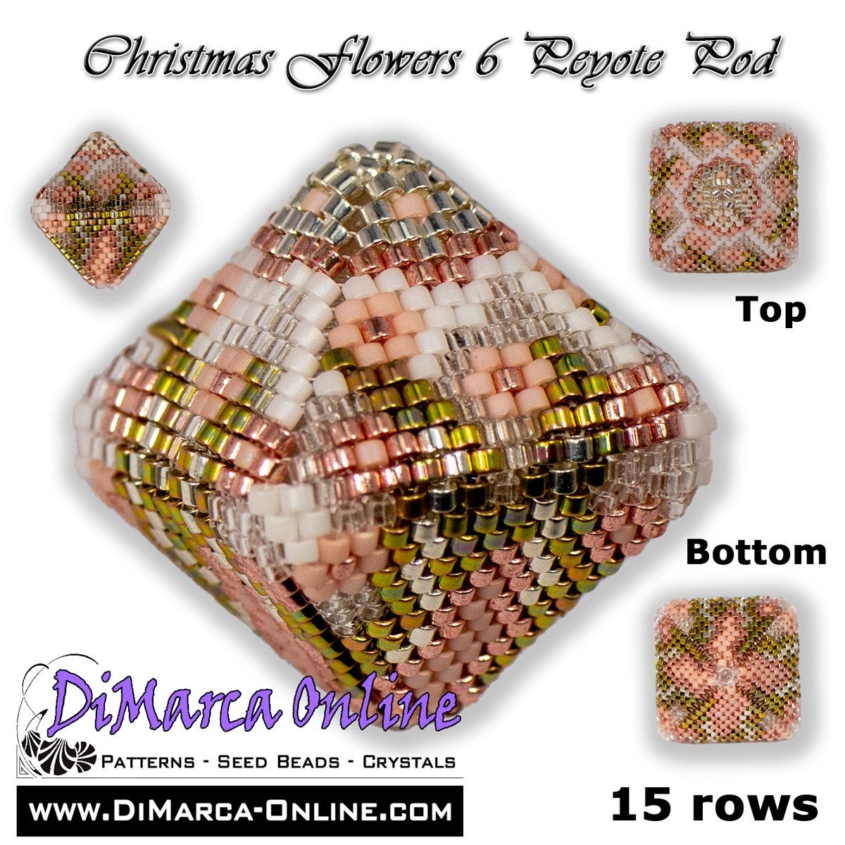 Tutorial 15 rows - Christmas Flowers 6 - 3D Peyote Pod + Basic Tutorial (download link per e-mail)