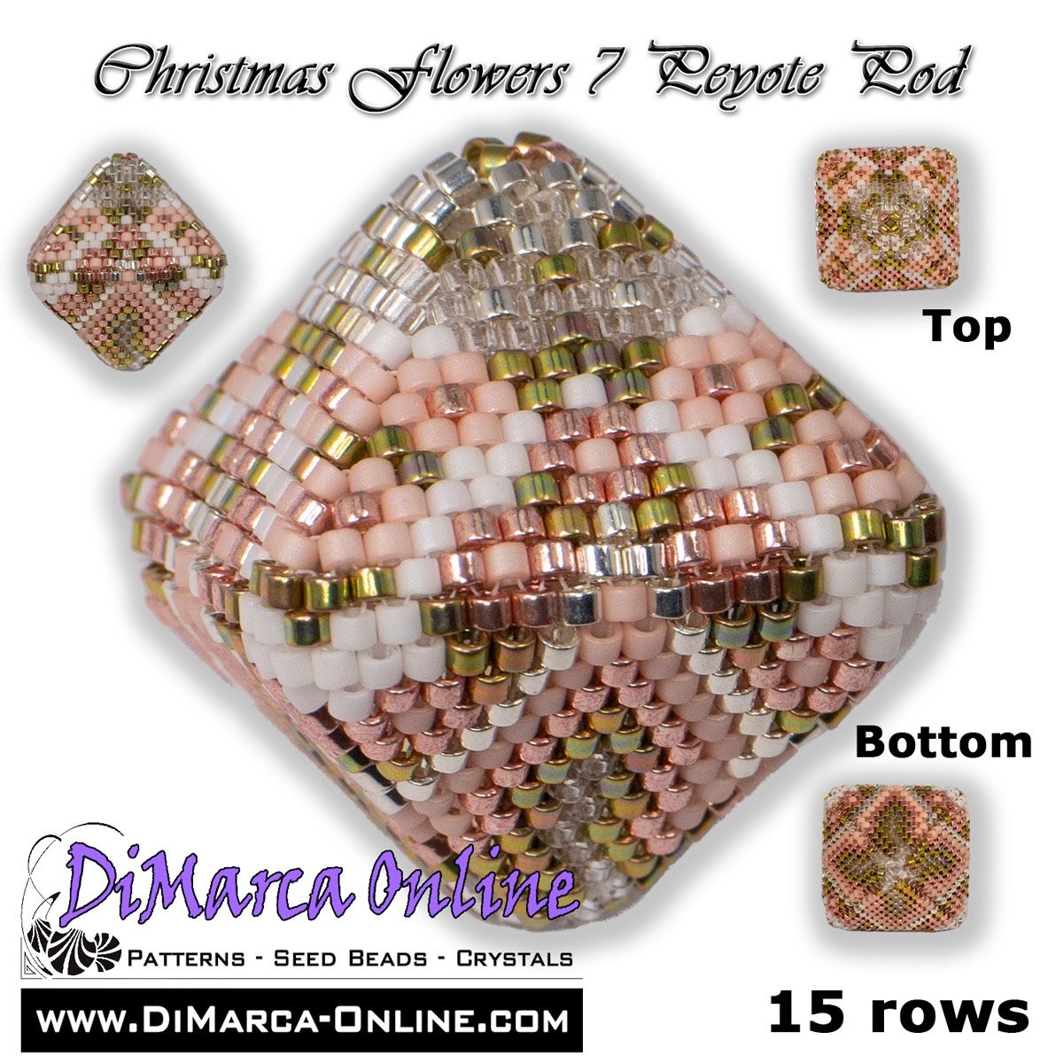 This beading pattern provides colour diagrams and word charts to create the CHRISTMAS FLOWERS 7 - 3D Peyote Pod.