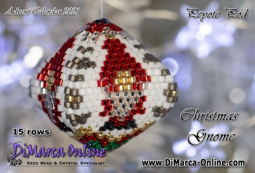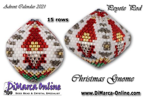 This beading pattern provides colour diagrams and word charts to create the CHRISTMAS GNOME 3D Peyote Pod.