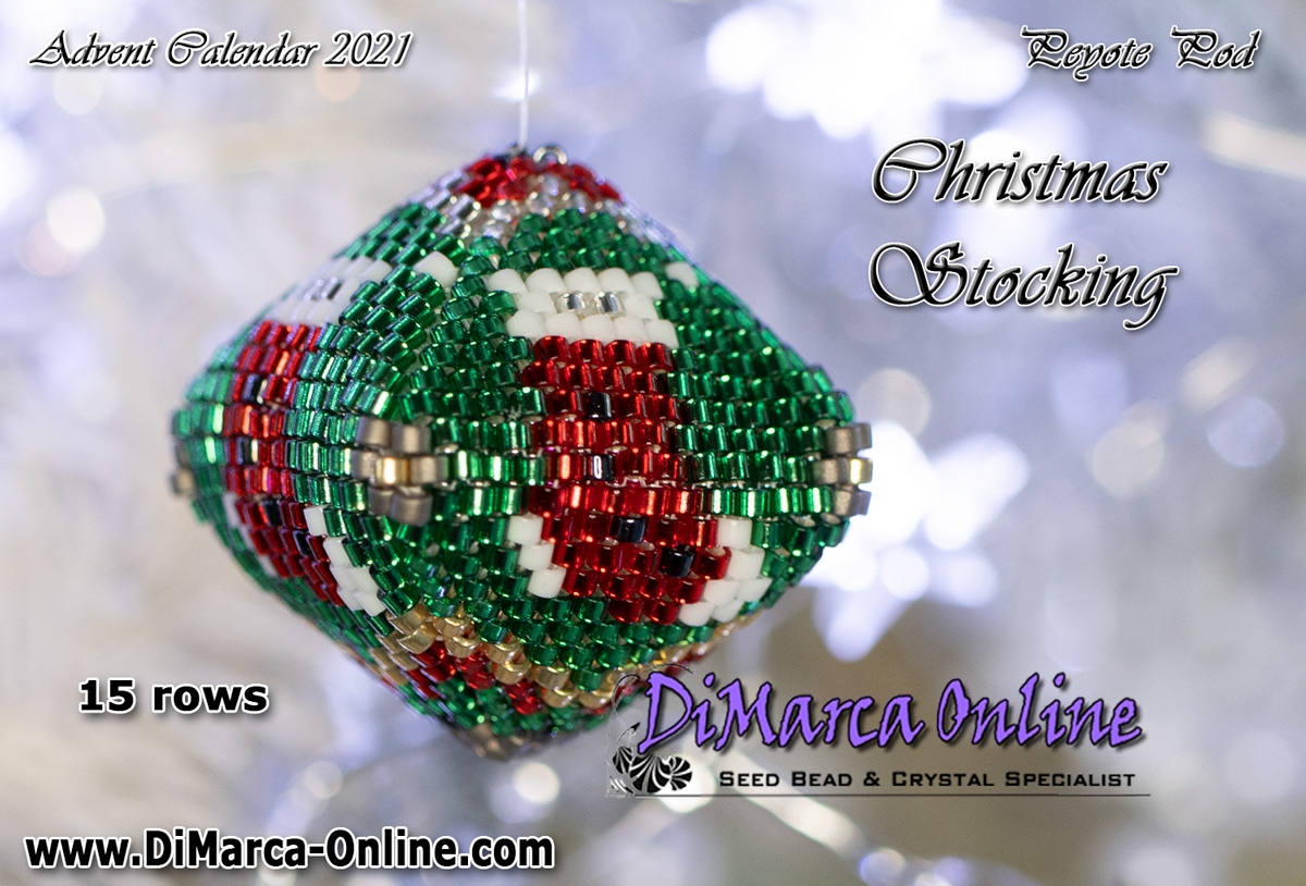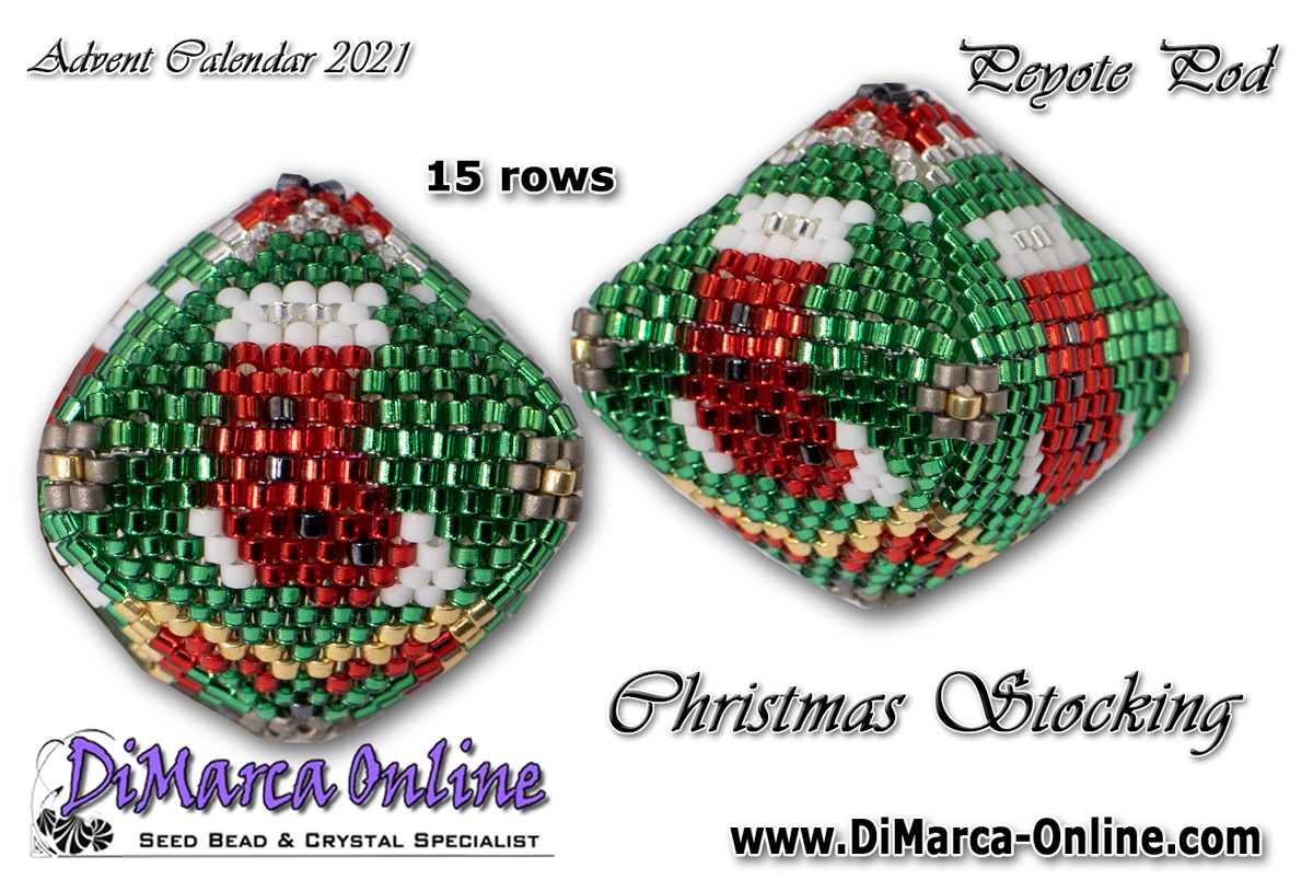 This beading pattern provides colour diagrams and word charts to create the CHRISTMAS STOCKING 3D Peyote Pod.