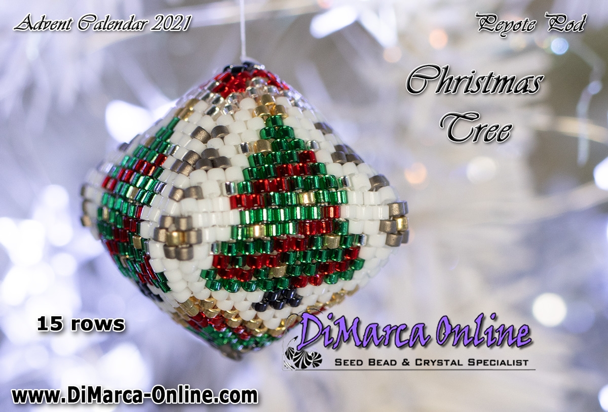 This beading pattern provides colour diagrams and word charts to create the CHRISTMAS TREE 3D Peyote Pod.