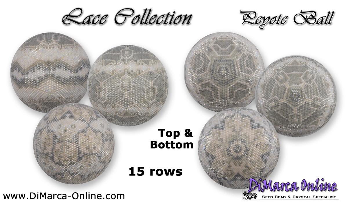 This beading pattern provides colour diagrams and word charts to create the LACE 1, 2 & 3 - 3D Peyote Balls.