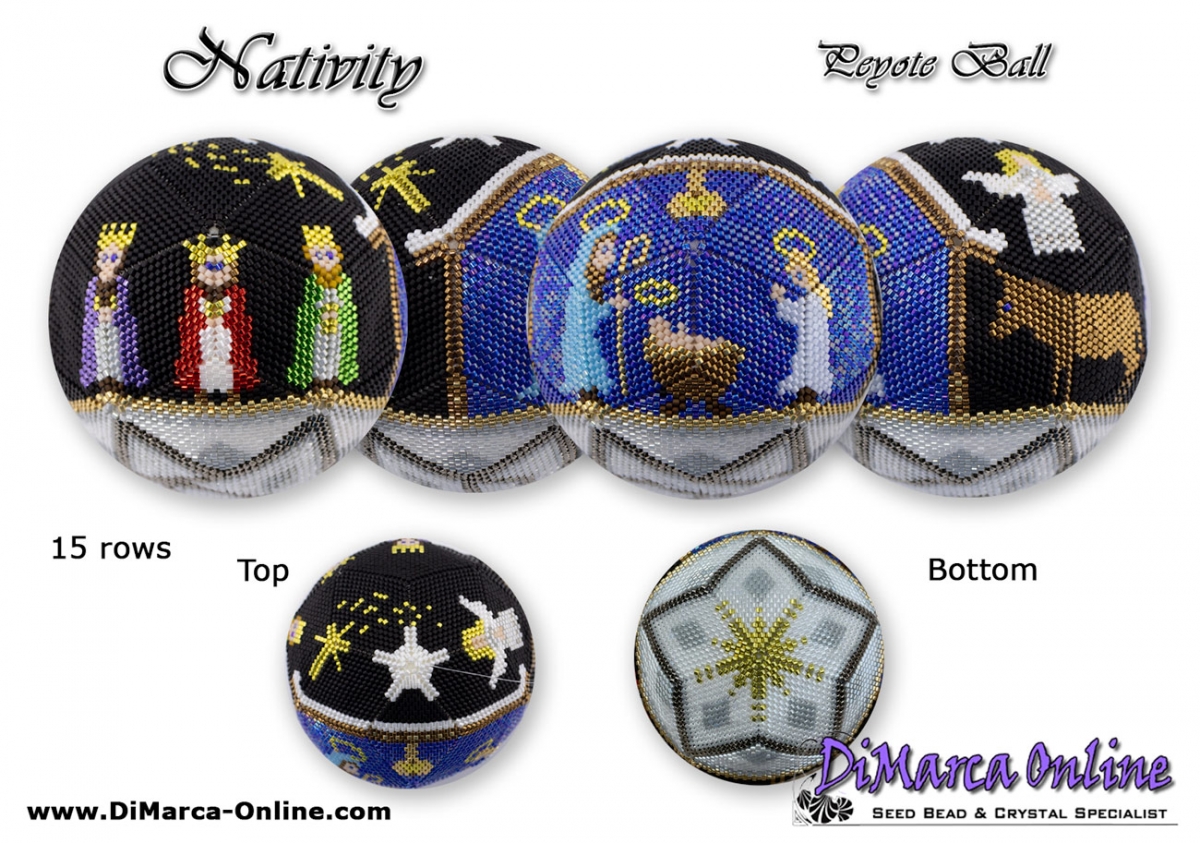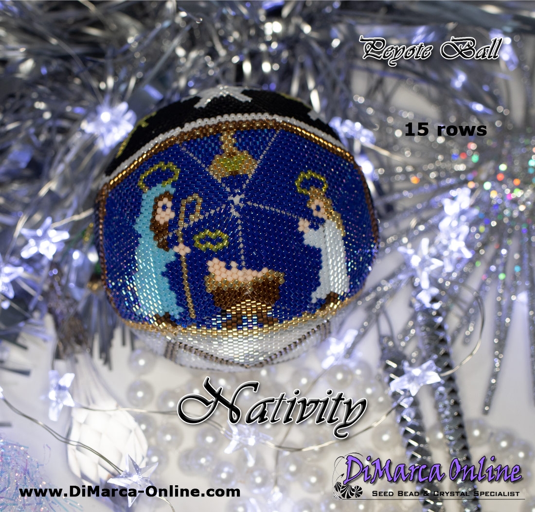 This beading pattern provides colour diagrams and word charts to create the NATIVITY 3D Peyote Ball.