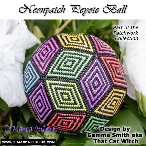 This beading pattern provides colour diagrams and word charts to create the NEONPATCH 3D Peyote Ball.