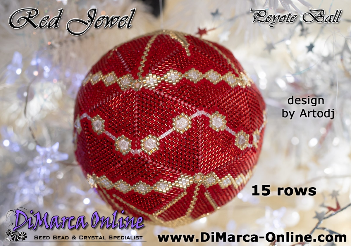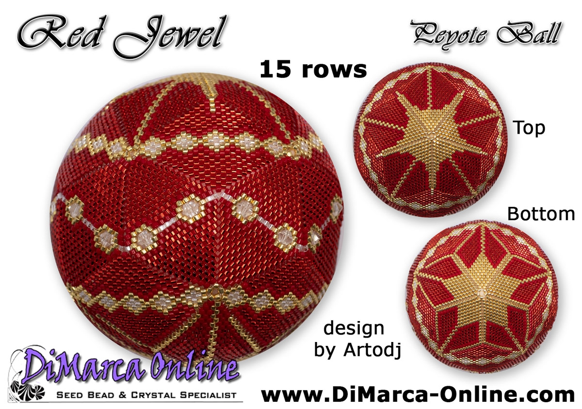 This beading pattern provides colour diagrams and word charts to create the RED JEWEL 3D Peyote Ball.