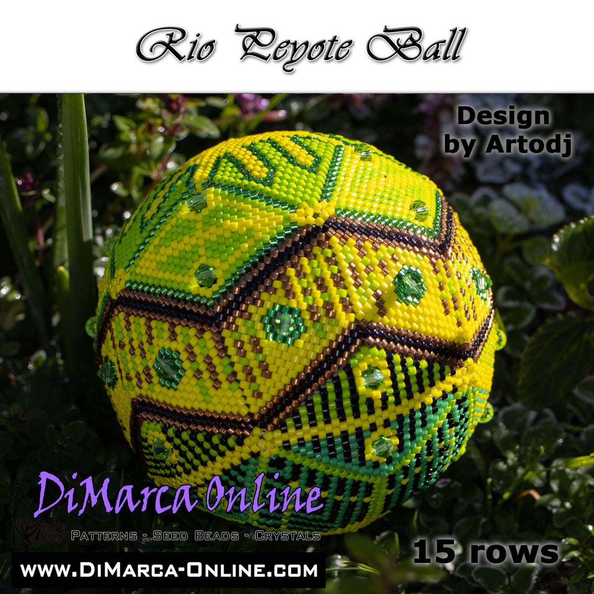 It includes a list of needed materials and colour codes. The Peyote Ball is beaded with Miyuki Delica's. You can also use Toho Treasures (but don't mix them, as there is a slight difference in size).