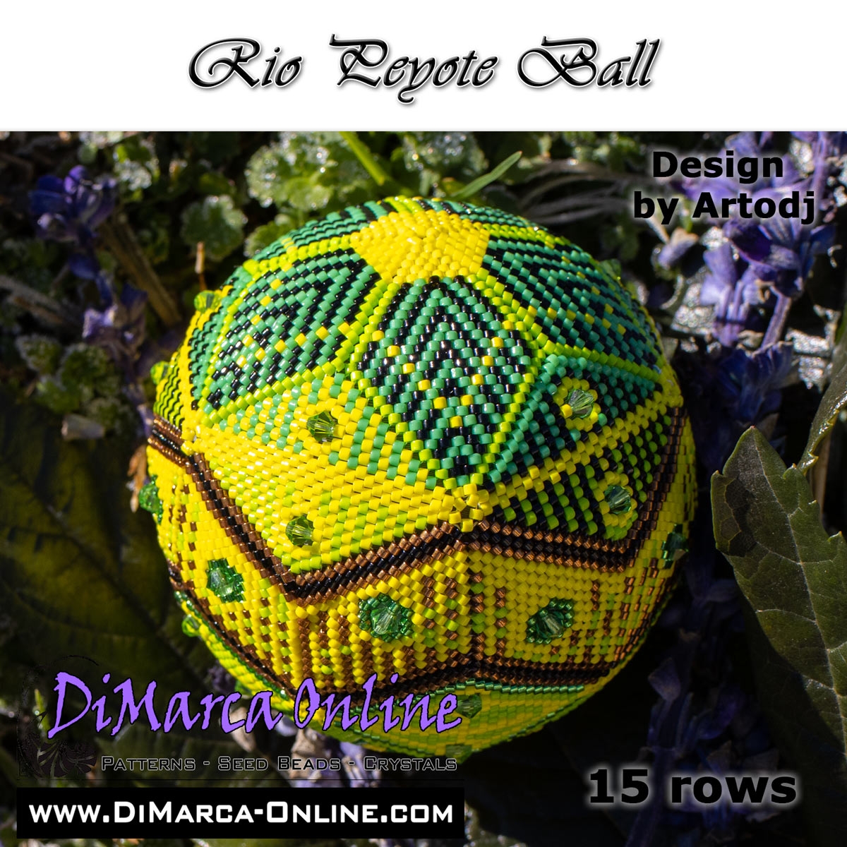 This beading pattern provides colour diagrams and word charts to create the RIO 3D Peyote Ball.