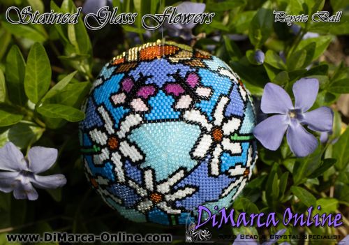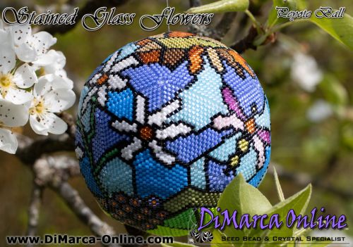 This beading pattern provides colour diagrams and word charts to create the STAINED GLASS FLOWERS 3D Peyote Ball.