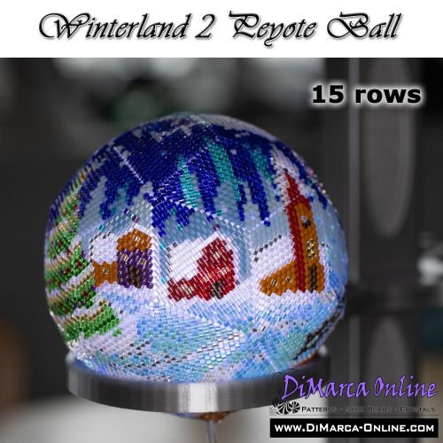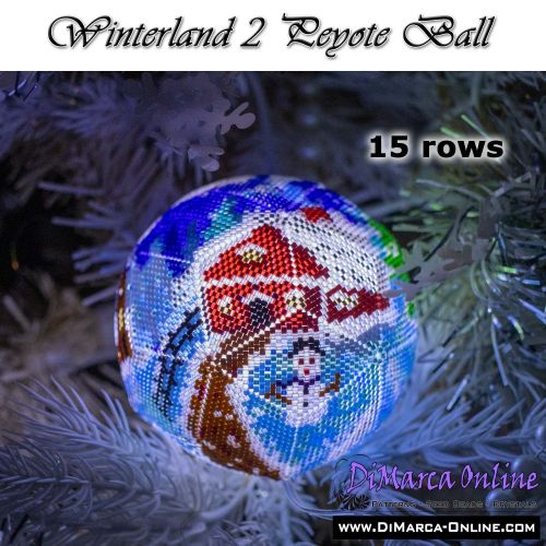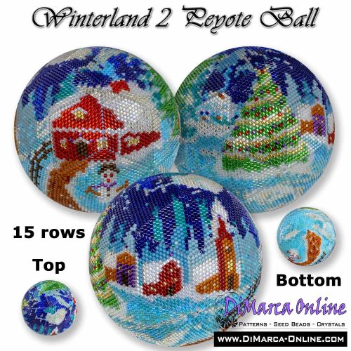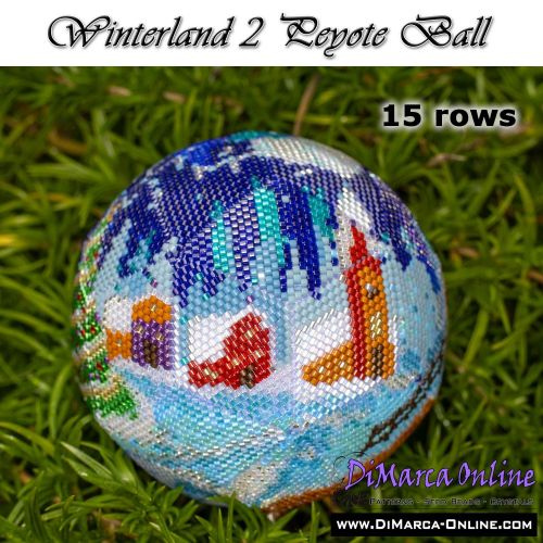 This beading pattern provides colour diagrams and word charts to create the WINTERLAND 2 - 3D Peyote Ball.