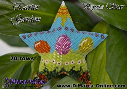 This beading pattern provides a colour diagram and word chart to create the EASTER GARDEN Peyote Star.