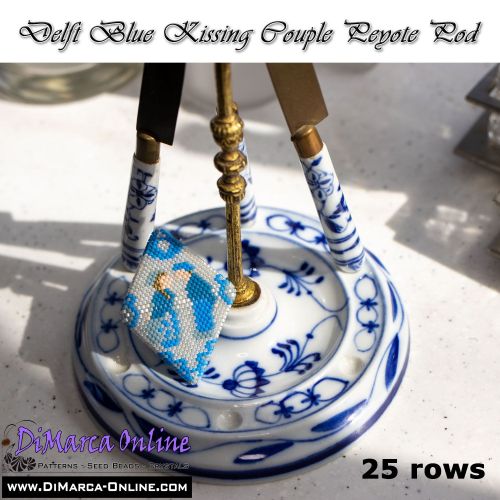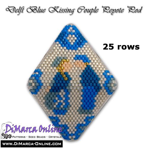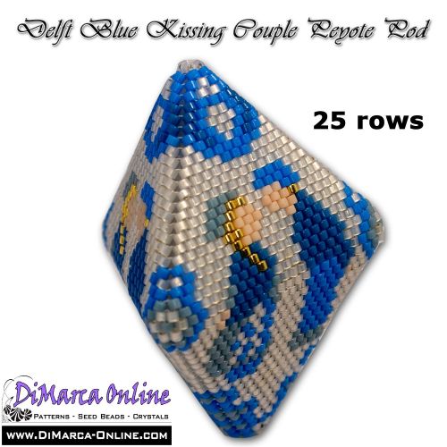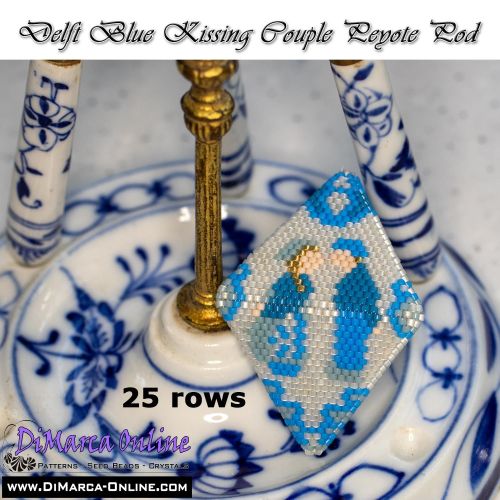This beading pattern provides a colour diagram and word chart to create the DELFT BLUE KISSING COUPLE 3D Peyote Pod.