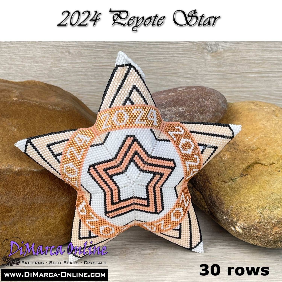 This beading pattern provides a colour diagram and word chart to create the 2024 - 3D Peyote Star.