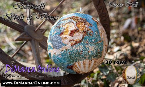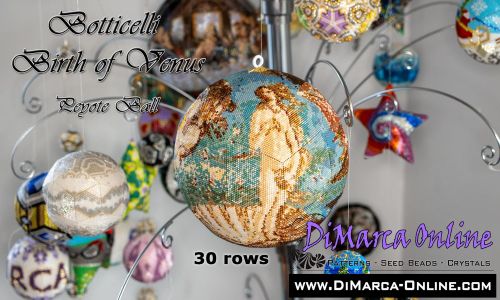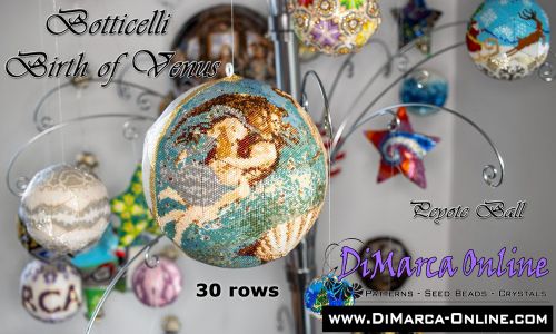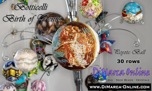 This beading pattern provides colour diagrams and word charts to create the SANDRO BOTTICELLI THE BIRTH OF VENUS 3D Peyote Ball.