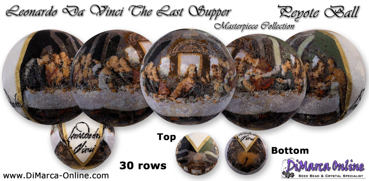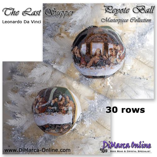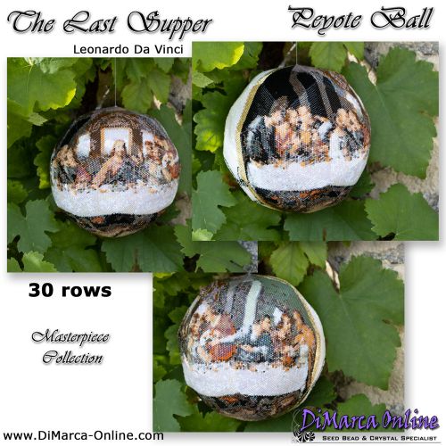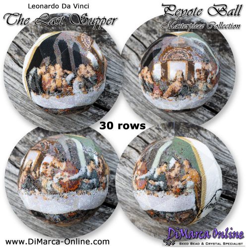 This beading pattern provides colour diagrams and word charts to create the LEONARDO DA VINCI THE LAST SUPPER 3D Peyote Ball.