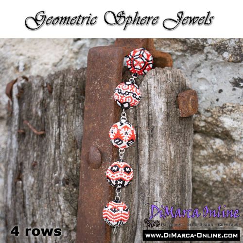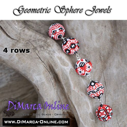 This beading pattern provides colour diagrams and word charts to create 5 GEOMETRIC SPHERE JEWELS (5 different designs) - 3D Peyote Balls.